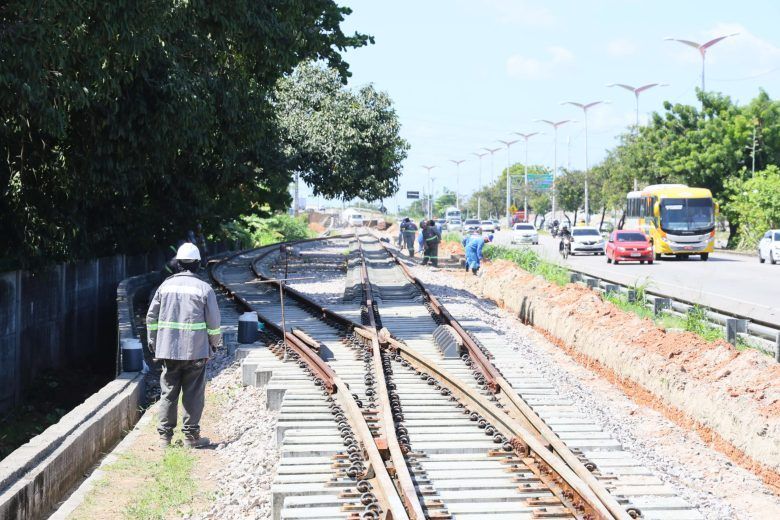 “Vamos terminar esse trecho [Ramal Aeroporto] até o fim do ano. E na próxima sexta-feira dar ordem de serviço do trecho que vai do Aeroporto até o Castelão, com duas estações pelo menos”, declarou o governador, destacando a importância da obra para a mobilidade urbana, especialmente durante grandes eventos na capital.