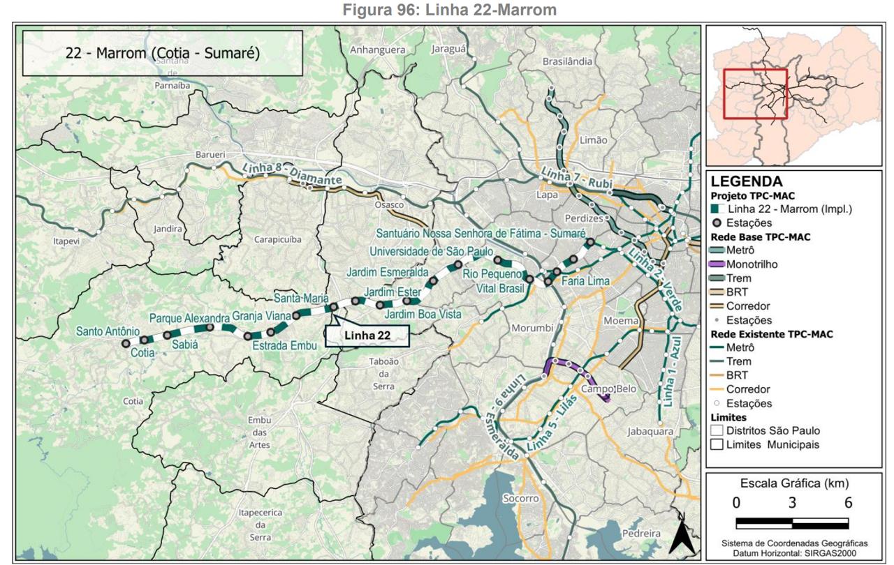 O estudo contratado pelo Metrô de São Paulo para embasar o projeto da futura Linha 22-Marrom — que pretende ligar Cotia à capital — passou por um aditivo contratual. A alteração foi motivada por uma mudança no traçado previsto, exigindo a realização de serviços adicionais, como aerofotogrametria e produção de novos materiais cartográficos. Com isso, o valor do contrato aumentou em R$ 102 mil, totalizando agora R$ 8,1 milhões.
