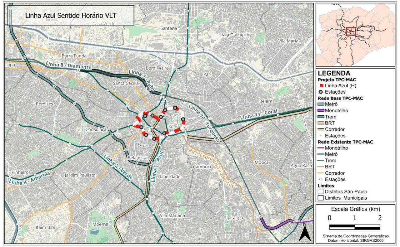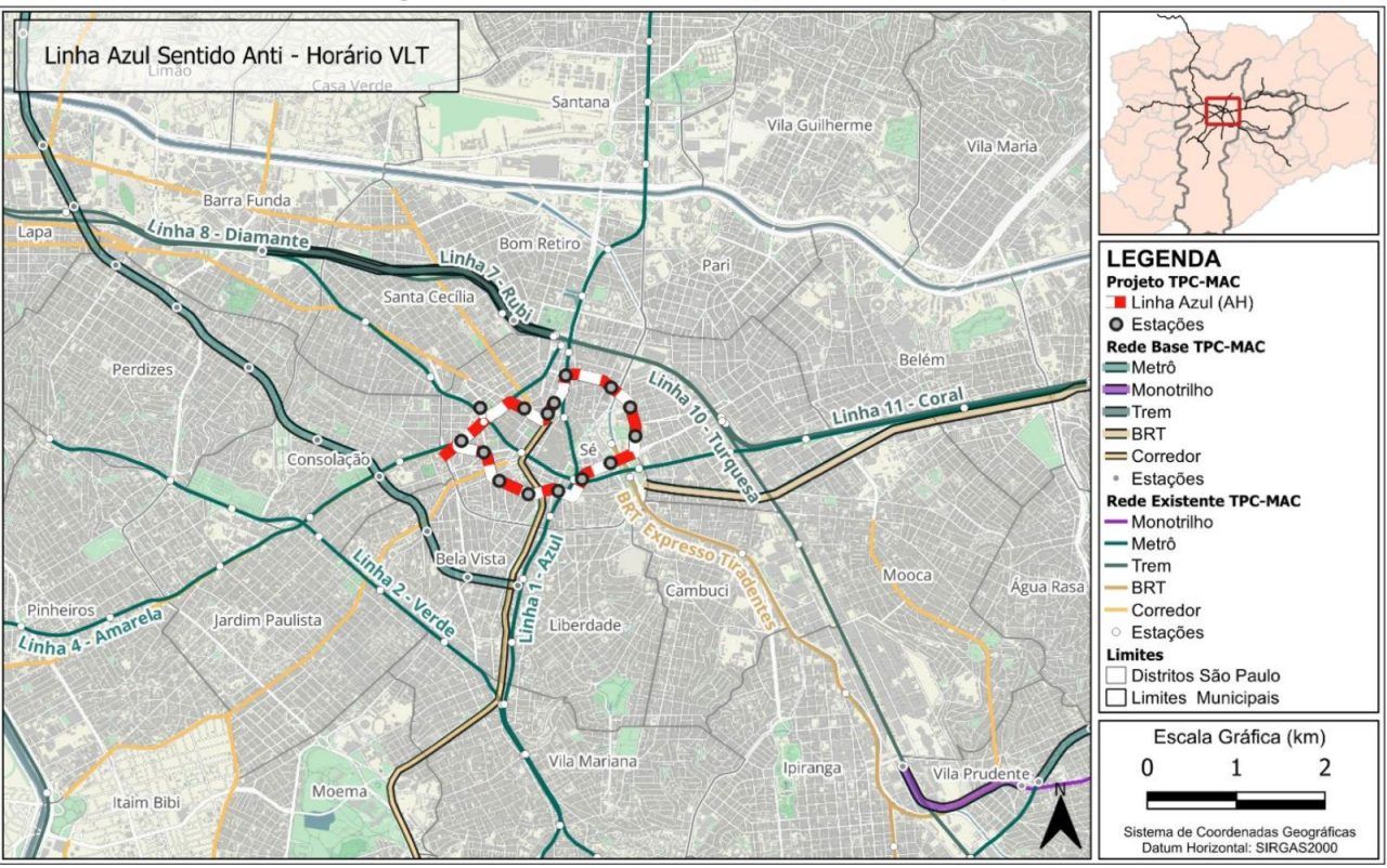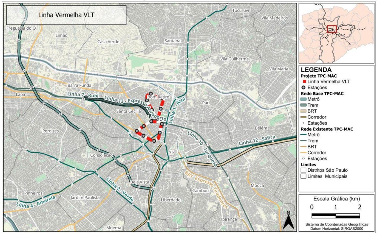 A futura Linha Sibipiruna do VLT terá 6,2 km de extensão, 14 estações e atenderá os bairros do Bom Retiro, República e Santa Cecília. O trajeto permitirá integração com a estação Júlio Prestes, da Linha 8-Diamante (ViaMobilidade), e com a estação da Luz, que conecta as linhas 1-Azul, 3-Vermelha e 4-Amarela do Metrô, além das linhas 10-Turquesa e 11-Coral da CPTM. A linha também deve se integrar a terminais de ônibus. O ponto inicial será na Avenida São João.
