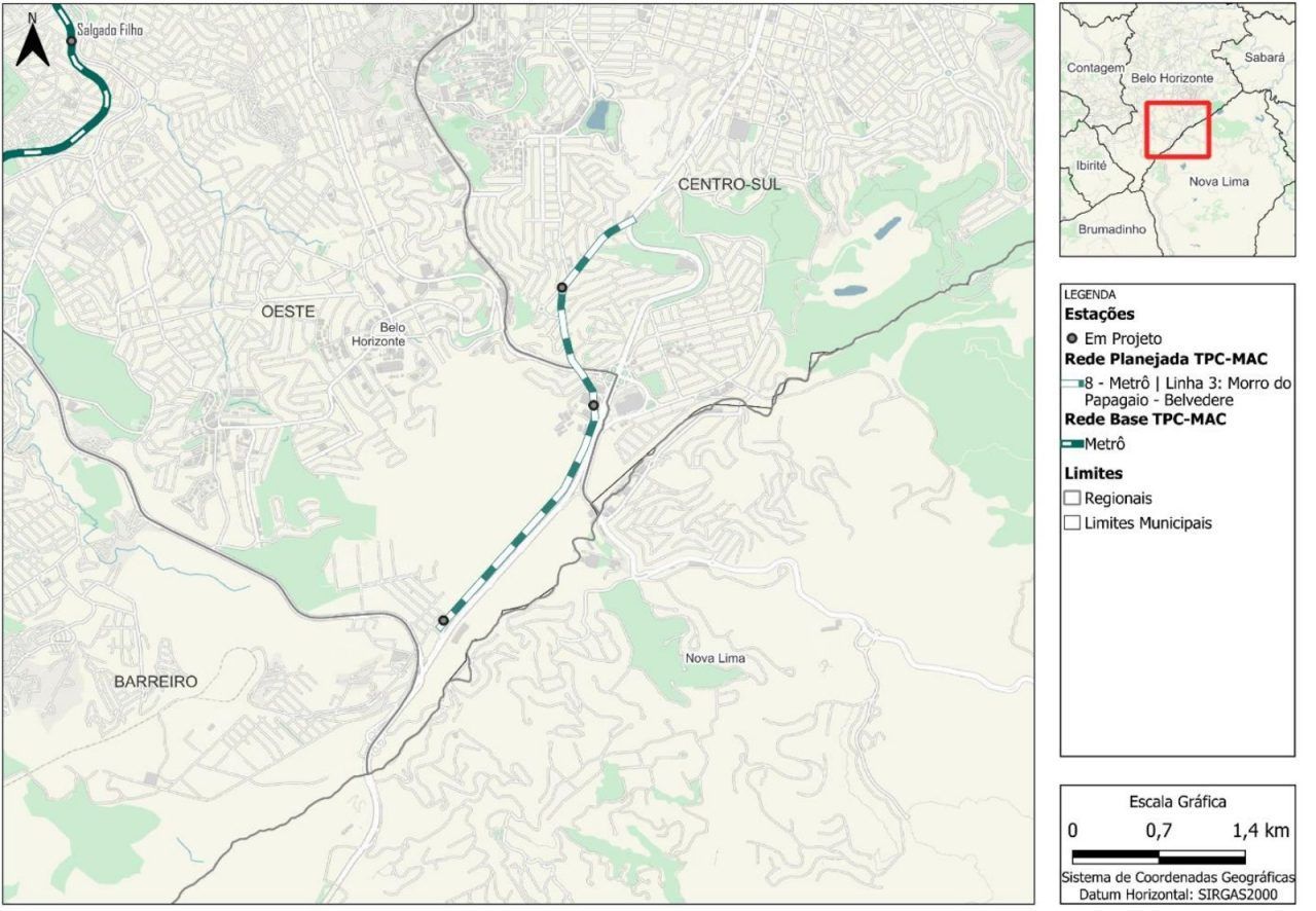 O prolongamento da Linha 3 até o Belvedere reforça a integração da região Sul com a Pampulha. Também estão previstas três novas estações e a conexão com a Linha 1. O estudo aponta desafios técnicos, como o declive da região, mas reforça o impacto positivo na redistribuição da demanda de passageiros.