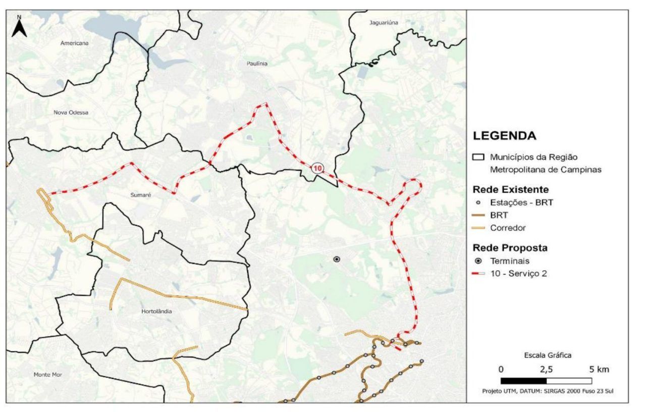 Já a Linha 5 teria 36 quilômetros de extensão, ligando Campinas, Sumaré, Hortolândia e Americana. Parte desse traçado pode ter sido aproveitada no projeto atual do governo estadual.