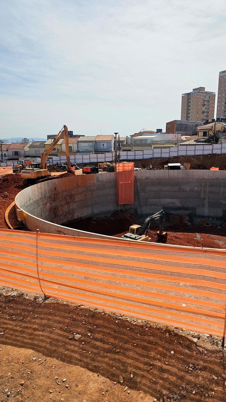 Imagens enviadas ao Via Trolebus pelo leitor Clayton Pereira mostram o andamento da escavação do poço da estação e sua concretagem: