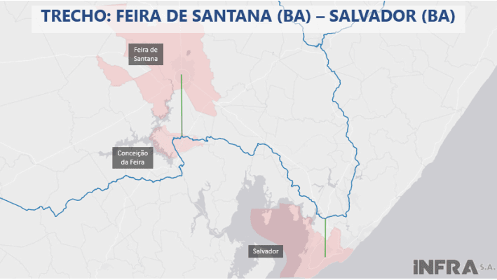 Na Bahia, o plano contempla a ligação Salvador–Feira de Santana, com aproximadamente 100 km. O trecho, hoje desativado, tem potencial para aliviar a saturação da BR-324 e fortalecer a integração econômica entre a capital e o interior.