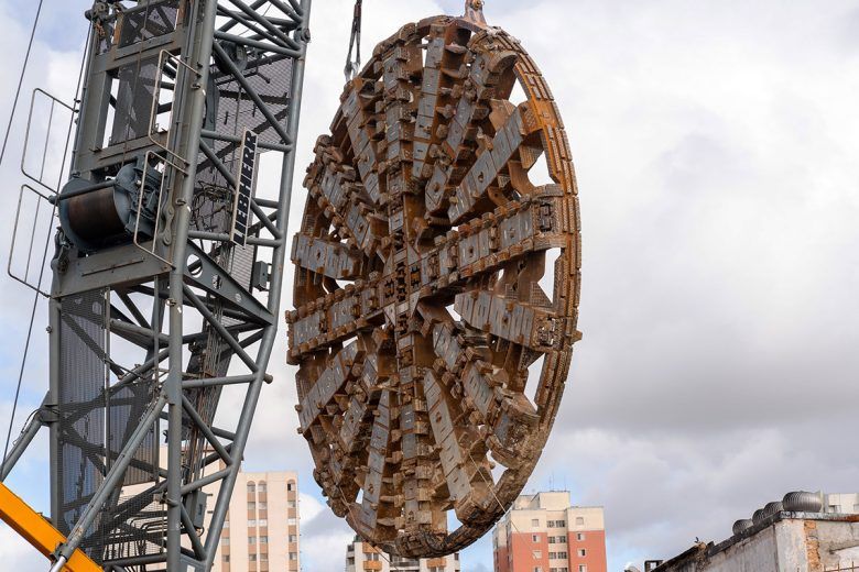 A montagem do tatuzão da Linha 2-Verde do Metrô, na estação Penha, teve um avanço importante nos últimos dias: a descida da roda de corte, segundo informações obtidas pelo Via Trolebus.