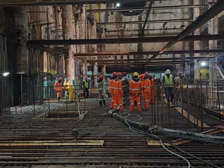 O projeto prevê dois poços secantes de 34 metros de diâmetro, que concentrarão as principais estruturas de circulação vertical — como escadas rolantes, fixas e elevadores. Esses poços ligarão o nível de acesso ao mezanino inferior, responsável pela distribuição dos fluxos de passageiros entre as plataformas.