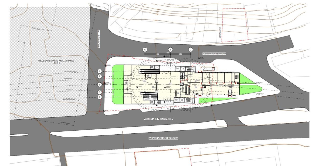 O projeto também destaca a proximidade com o Shopping Anália Franco, um dos principais polos de comércio e serviços da cidade, responsável por gerar alta demanda de usuários. O entorno da estação possui infraestrutura urbana consolidada, com vias arteriais, escolas, hospitais e ampla rede de serviços, o que reforça o potencial do bairro como um dos principais centros de adensamento da capital.