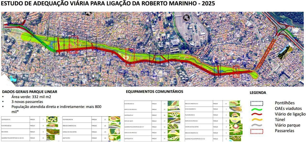 A Prefeitura de São Paulo oficializou, na última semana, o resultado da licitação que selecionou a empresa responsável pelas obras do Complexo Viário Roberto Marinho e do Parque Linear Água Espraiada. A expectativa é que os trabalhos comecem no primeiro trimestre de 2026, com prazo contratual de até 51 meses, dos quais 48 destinados à execução.
