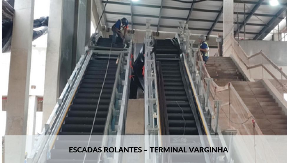 Entre os principais serviços executados estão a concretagem do pavimento, a montagem da estrutura metálica da passarela e a instalação das escadas rolantes, indicando avanço significativo na fase estrutural e de acabamentos da nova estação.