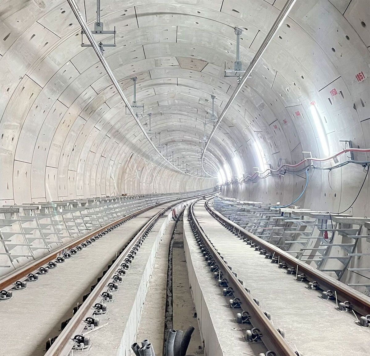 Outra imagem mostra a instalação da via permanente. Um comunicado recente da Acciona informa que foi finalizada a implantação da via permanente no trecho correspondente à primeira etapa do projeto, entre Brasilândia e Sesc Pompeia.