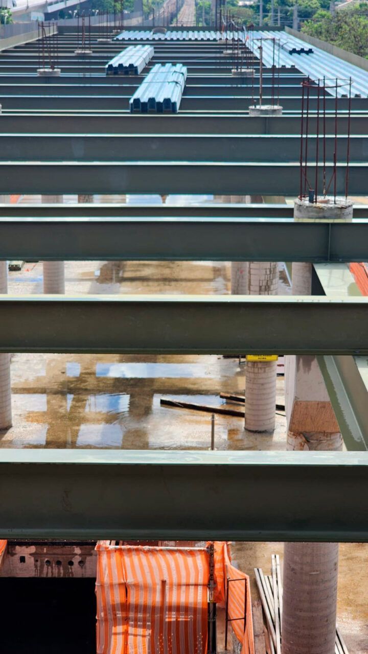 O mezanino da estação já começa a ganhar forma com a instalação de vigas metálicas, que irão sustentar a área localizada acima das plataformas de embarque e desembarque dos trens nos sentidos Barra Funda e Estudantes. Além disso, parte da cobertura da estação também começou a ser montada. As imagens mais recentes, registradas por Jean Veber, foram enviadas ao Via Trolebus.