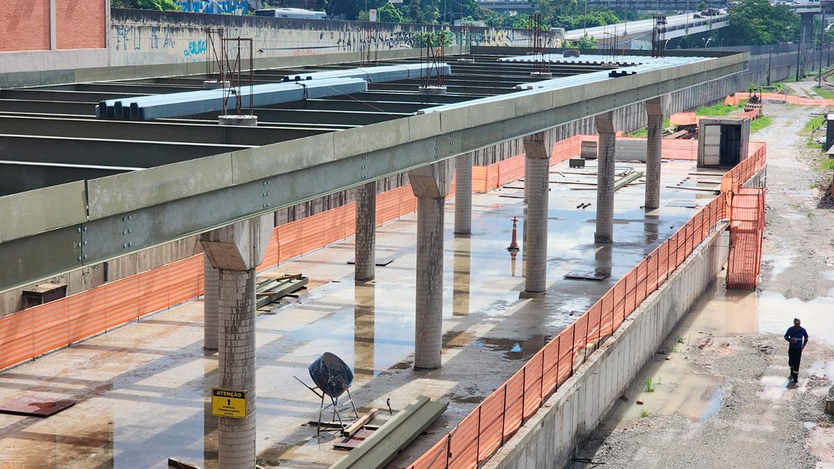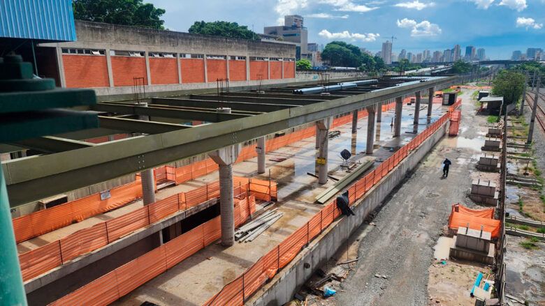 Os registros mostram o lado oeste da futura estação. Já no setor leste ficará a área destinada à integração com as Linhas 2-Verde e 3-Vermelha do Metrô, ampliando as opções de conexão para os passageiros.