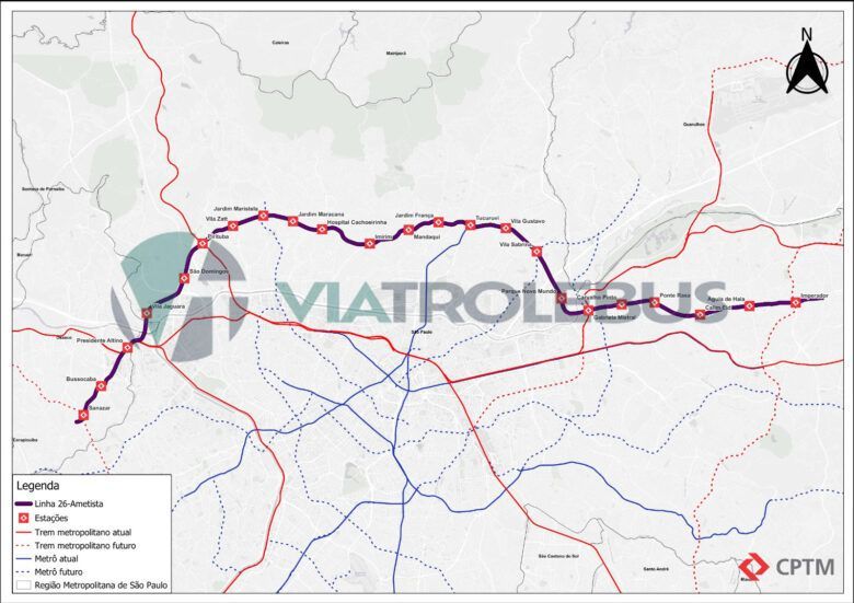 O tramo norte corresponde a nova Linha 26-Ametista, que contara com 41 km de extensão e 23 estações. A projeção de demanda impressiona: cerca de 790 mil passageiros por dia. O projeto observa que este eixo terá uma alta rotatividade de usuários, com diversos deslocamentos entre as estações ao longo da linha.