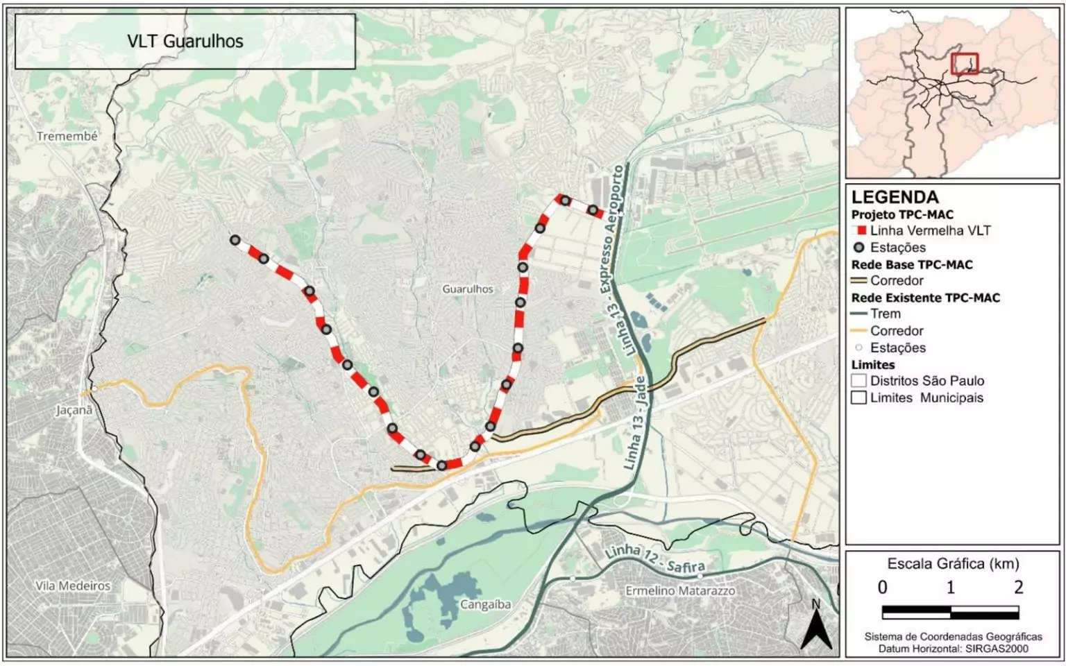 Integração: O VLT permitirá a conexão direta com a Linha 13-Jade da CPTM e, futuramente, com a Linha 19-Celeste do Metrô.
