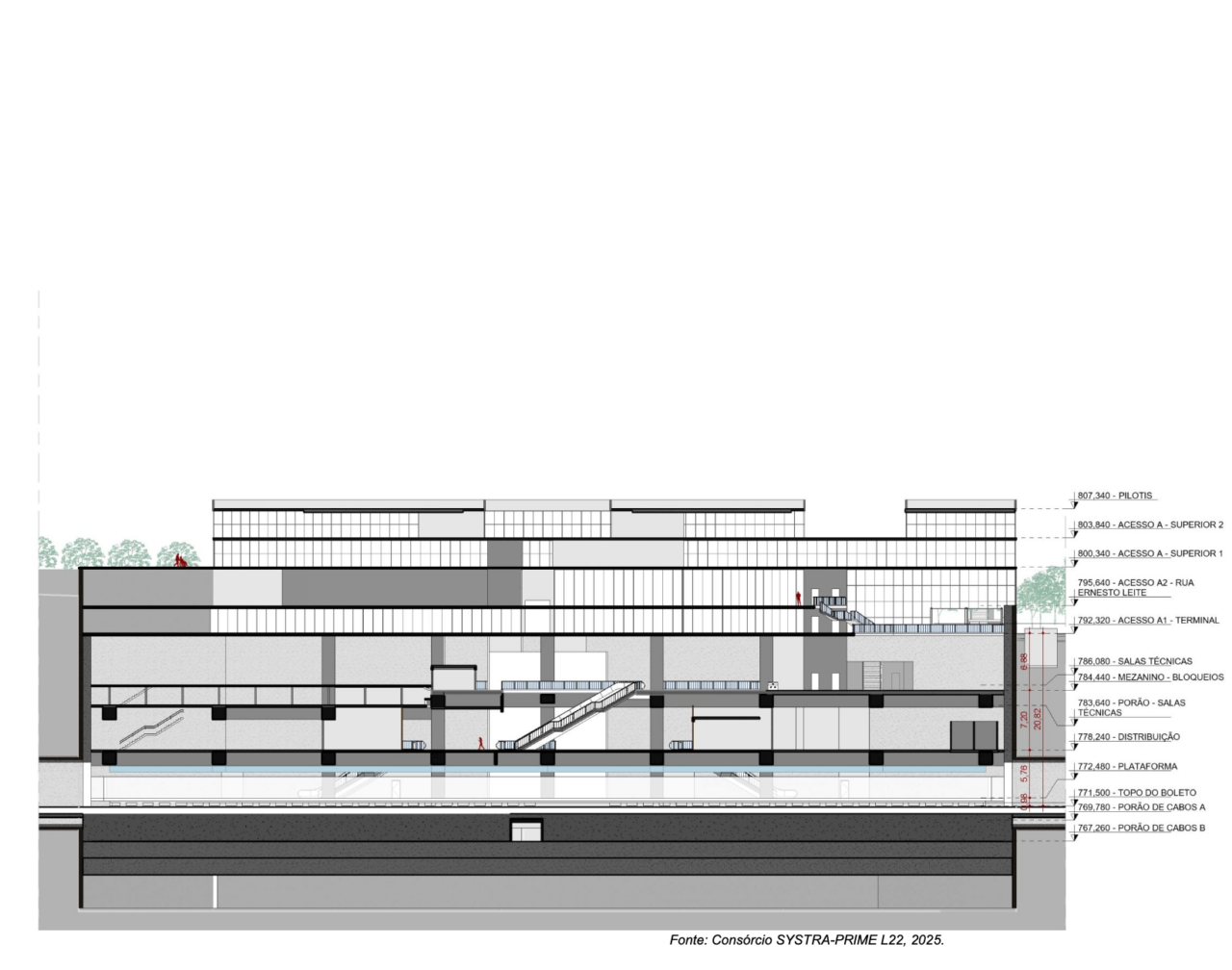 - Acesso A: Corpo principal da estação lindeiro ao terminal.