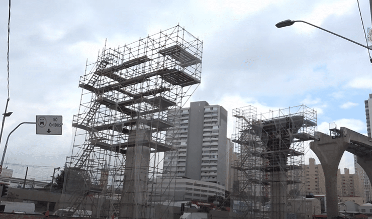 As obras da área de manobra do monotrilho da Linha 15-Prata após a estação Vila Prudente estão em curso e já é possível avistar os primeiros pilares, que devem sustentar as vigas-trilho. Imagens do canal Marcos Felício no YouTube mostram ...