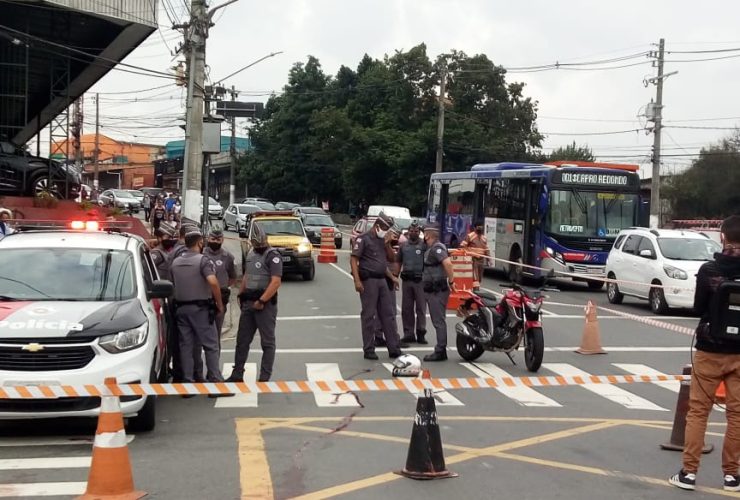 Uma ocorrência policial provoca interdição na Estrada do Itapecerica, Zona Sul de São Paulo, na manhã desta sexta-feira, 26 de fevereiro de 2021. Um policial militar sofreu uma tentativa de assalto e houve troca de tiros. A ocorrência foi no ...