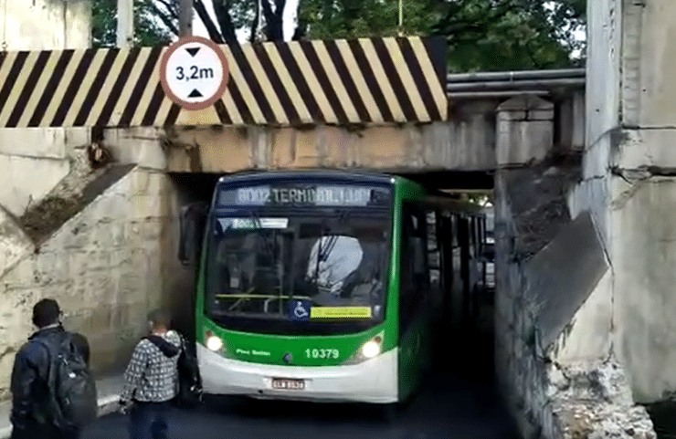 Um vídeo que circula nas redes sociais mostra um ônibus do sistema paulistano entalado em um viaduto. O coletivo da Linha 8002 que estava no sentido do Terminal Lapa acabou não conseguindo passar na Avenida Raimundo Pereira de Magalhães, após ...