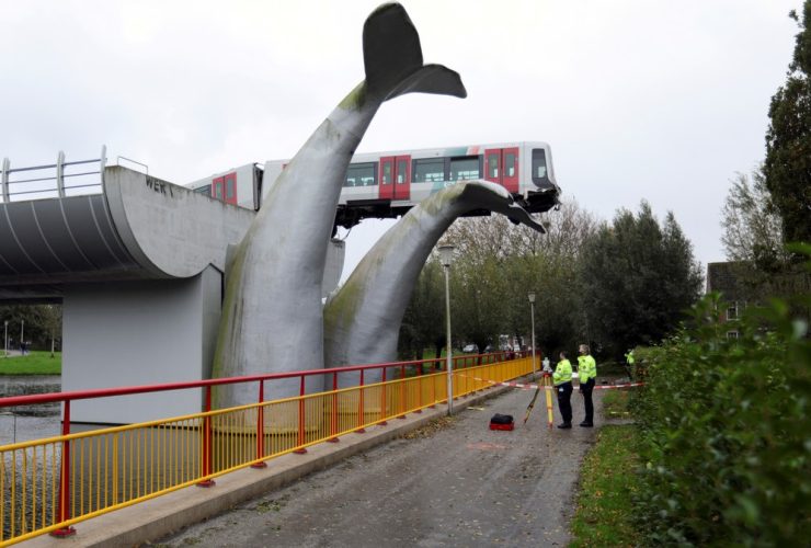 Parece uma escultura ou um trabalho artístico. Mas não é! Uma composição que operava em uma estrutura elevada saiu dos trilhos na manhã desta segunda-feira, 02 de novembro de 2020, na cidade de Roterdã, na Holanda. O comboio acabou amparado por ...