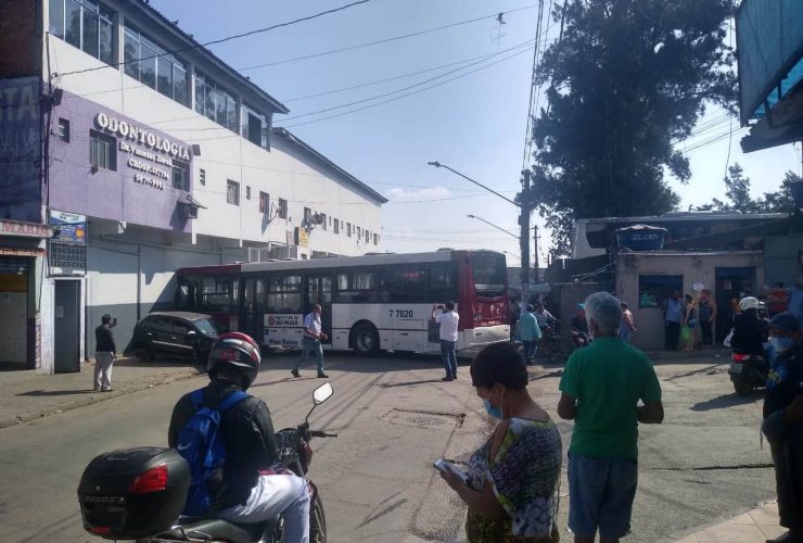Um ônibus da empresa KBPX se chocou com um muro na Rua Ciclades, próximo ao Supermercado Barbosa, no Jardim Guarujá, na tarde deste sábado, 18 de julho de 2020. A ocorrência provoca lentidão em ruas da região. Os demais coletivos ...