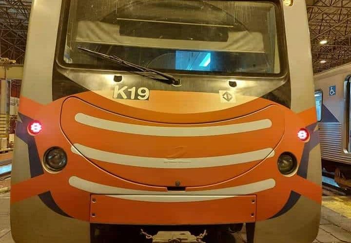 Imagens que circulam nas redes sociais mostram algumas frotas do Metrô de São Paulo, com adesivos que teriam sido inseridos na parte frontal da composição simbolizando máscaras. O trem acima é da frota K, e outras imagens mostram um composições ...
