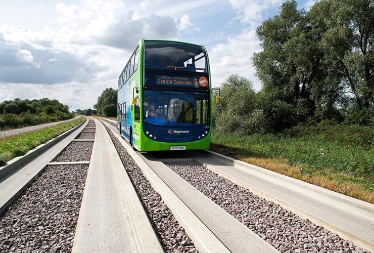 O Reino Unido usou em destes espaços para construir um corredor de ônibus do tipo BRT (Bus Rapid Transit), com um aspecto diferente dos demais: os ônibus possuem sistema de guiagem. A estrutura liga Cambridge, Huntingdon e St Ives sendo ...