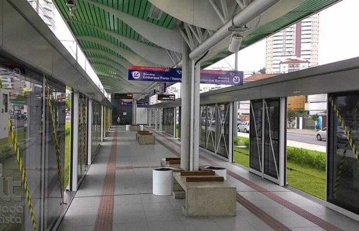 Foi concluída a instalação das portas de plataforma da estação Bernadino, do Veículo Leve Sobre Trilhos da baixada Santista. Os trabalhos tiveram início em agosto, e os equipamentos em todas as paradas devem ser instalados em seis meses. As imagens são da ...