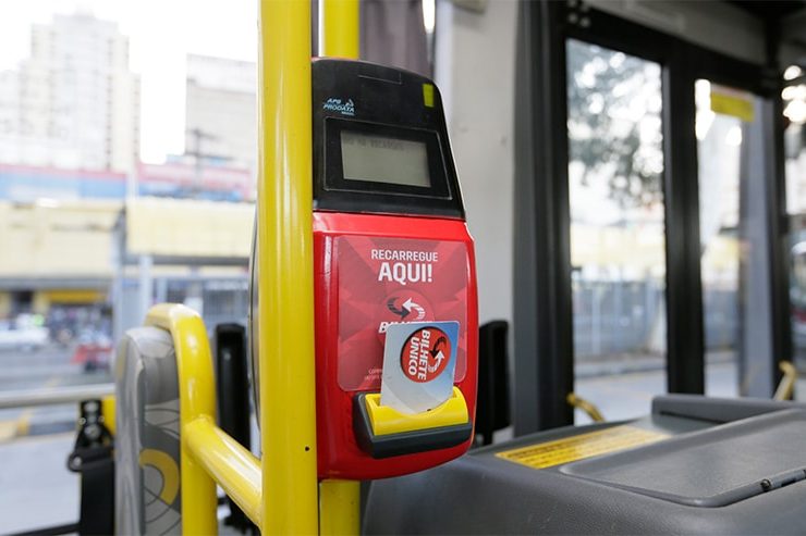 Foto: César Ogata/Secom A prefeitura de São Paulo inicia nesta terça-feira, 31 de Maio, um sistema de recarga do Bilhete Único no interior dos ônibus. Neste primeiro momento os equipamentos estão instalados em 334 superarticulados, e todos os 14.700 veículos ...