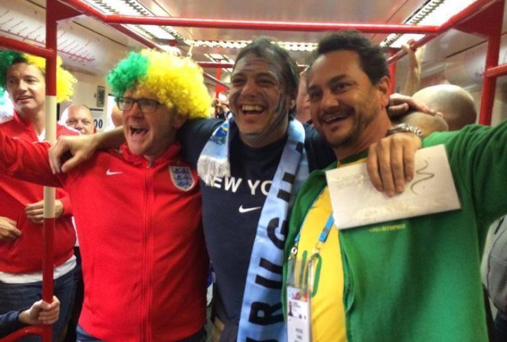 Torcedores da Copa de Mundo no Brasil invadem o transporte sobre trilhos na cidade de São Paulo, através das linhas do Metrô e da CPTM. As linhas 3-Vermelha e 11-Coral são os caminhos que levam os turistas até o estádio ...