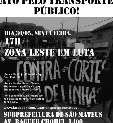 O Movimento passe Livre, que luta por uma vida sem catracas e melhor mobilidade das pessoas esta de volta, e promete manifestações para reivindicar melhorias no bairro de São Mateus. “Diminuíram a frequência da linha Jd. Santo André, para melhorar ...