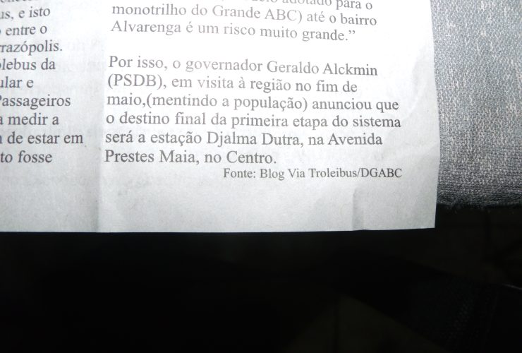 Na segunda-feira (24) publicamos uma notícia um tanto quanto polêmica sobre a construção da Linha 18-Bronze do Metrô, onde declarações do ex-presidente do Metrô e atual secretário-adjunto de Transportes Metropolitanos do Estado, Peter Walker, dão conta de que o Monotrilho ...