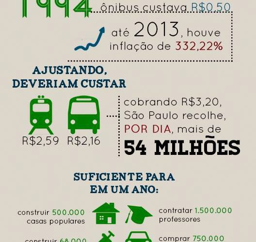 Ainda sobre a onda de protestos presentes na capital paulista em relação ao aumento na tarifa, uma imagem circula no Facebook questionando o preço de R$ 3,20. A imagem foi publicada por uma fanpage chamada “não aguento quando” e questiona ...
