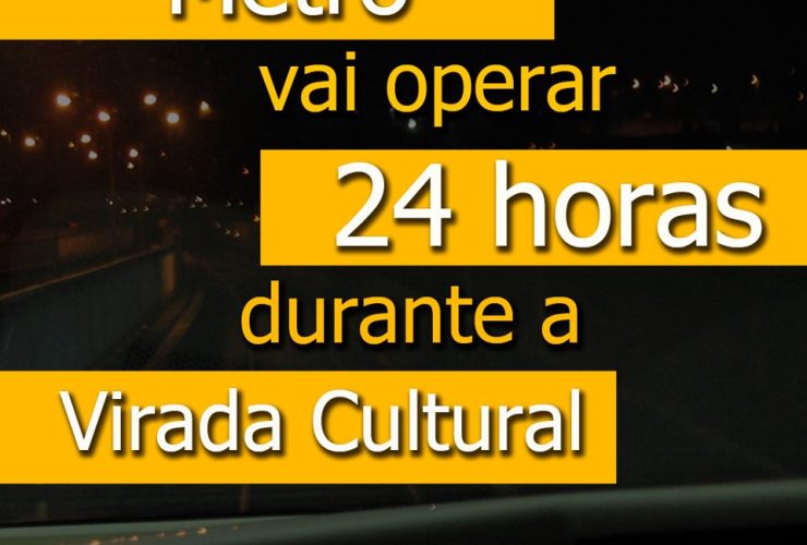 O Metrô de São Paulo deve operar 24 horas entre o próximo sábado e domingo (18 e 19), final de semana que acontece a 9º Virada Cultura da cidade de São Paulo. O evento ocorre entre 18h do sábado às ...