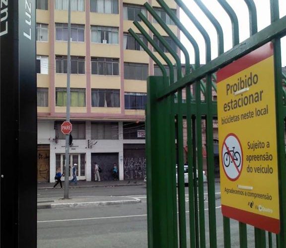 A ViaQuatro, empresa que administra a Linha 4 – Amarela fixou nos postes logo na frente das entradas das estações Paulista e Faria Lima placas proibindo o estacionamento de bicicletas: “Proibido estacionar bicicletas neste local. Sujeito a apreensão do veículo”. ...