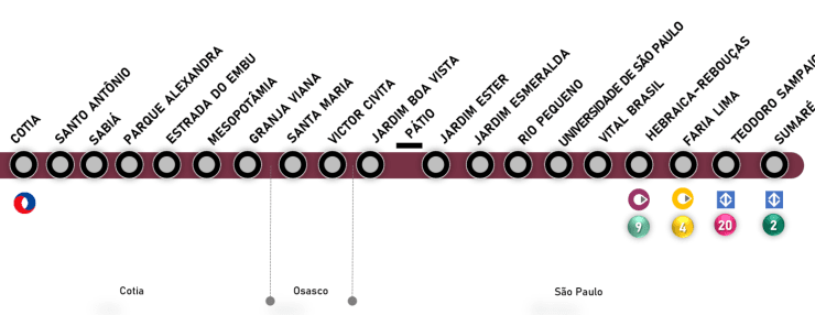 O projeto da Linha 22-Marrom do Metrô vai contar com 29 quilômetros de extensão, 19 estações, e deve promover a ligação de alta capacidade entre Cotia e São Paulo, por meio de um eixo paralelo a Rodovia Raposo Tavares. O ...