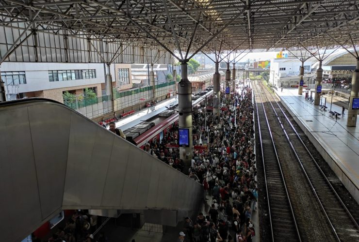Os passageiros que utilizavam a linha 11-Coral ou o serviço 710, da Companhia Paulista de Trens Metropolitanos – CPTM, na estação Brás, encontravam as plataformas lotadas durante a tarde deste sábado, 22 de abril de 2022. Em virtude de obras, ...