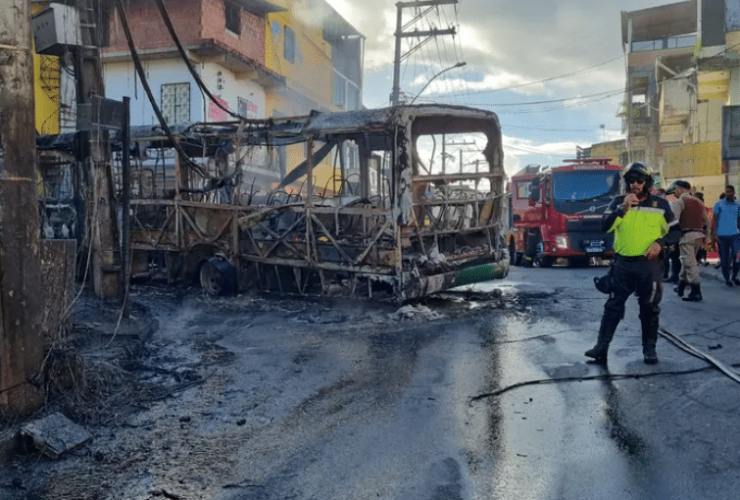 Linhas de ônibus não estão circulando nos bairros do Arenoso e Tancredo Neves, em Salvador, nesta segunda-feira, 10 de abril de 2023, após confronto de policiais e criminosos. Durante os conflitos, dois homens, que seriam suspeitos de tráfico de drogas, ...