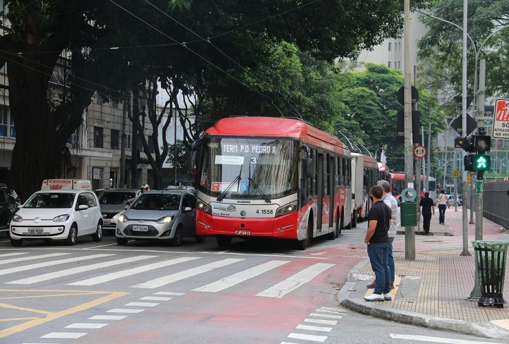Linhas que operam com trólebus no centro de São Paulo estão circulando com intervalos prolongados na manhã desta quarta-feira, 8 de fevereiro de 2023. De acordo com a SPTrans, há ocorrência de rede aérea partida na Avenida Ipiranga com a ...