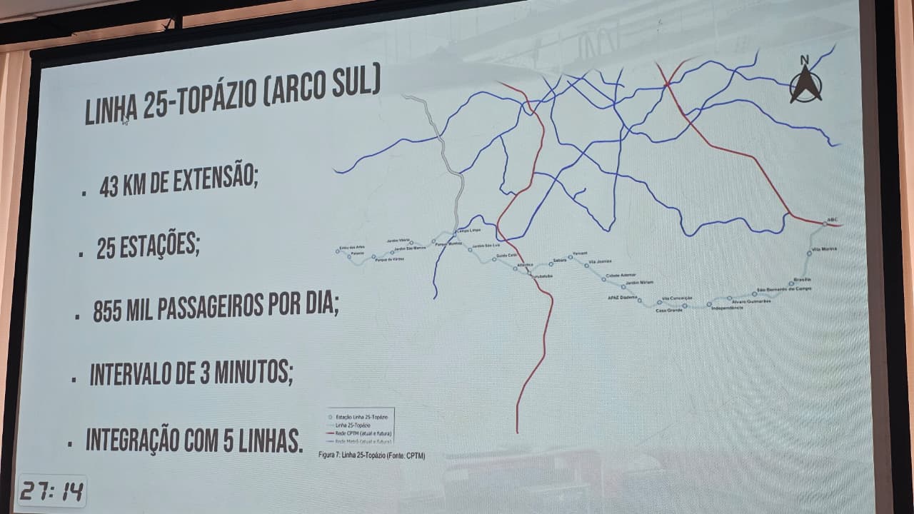 Uma apresentação da Companhia Paulista de Trens Metropolitanos – CPTM confirmou a extensão da futura Linha 25-Topázio até Santo André. A informação havia sido revelada por este site em julho e agora um painel na 31ª Semana de Tecnologia Metroferroviária, ...