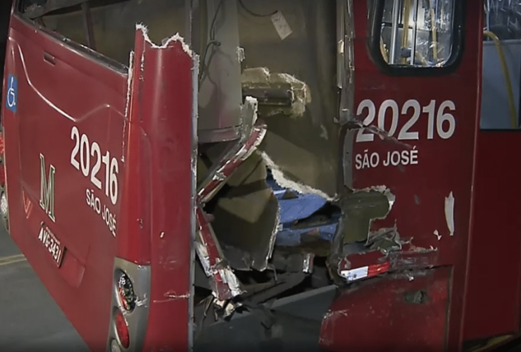 Um ônibus e um trem colidiram em Pinhais, na Região Metropolitana de Curitiba, na noite deste domingo, 21 de agosto de 2022, e pelo menos quatro pessoas ficaram feridas. O sinistro de trânsito ocorreu em um cruzamento da ferrovia com ...