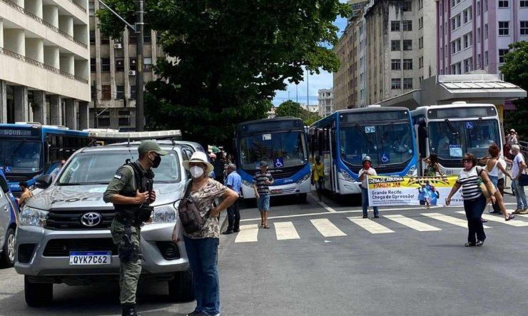 Motoristas de ônibus fazem um protesto na tarde desta quinta-feira, 09 de dezembro de 2021, no centro de Recife, de acordo com o Jornal do Comércio. A classe trabalhadora quer mais segurança no transporte público e o fim da dupla ...