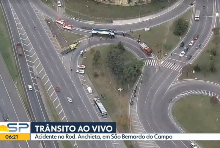 Um ônibus rodoviário tombou em uma alça de acesso da Rodovia Anchieta, em São Bernardo do Campo, na manhã desta quinta-feira, 25 de agosto de 2021. De acordo com a Viação Cometa, houve três feridos na ocorrência. “A Viação Cometa ...