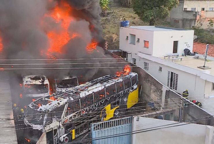 Um incêndio atingiu uma garagem de ônibus em Belo Horizonte, na manhã desta terça-feira, 15 de junho de 2021. Os seis veículos que foram destruídos pelas chamas são de uma empresa de turismo, e estavam no bairro Aparecida, na Região ...