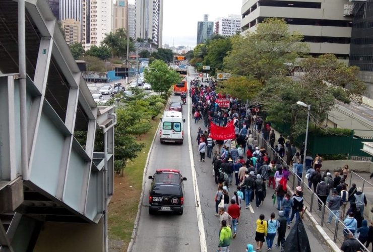 Um protesto por moradias fechava faixas da Avenida Rebouças, na manhã desta segunda-feira, 07 de maio de 2021. A manifestação teve início nas imediações do Metrô Butantã e o grupo foi em direção a Avenida Brigadeiro Faria Lima. Por volta ...