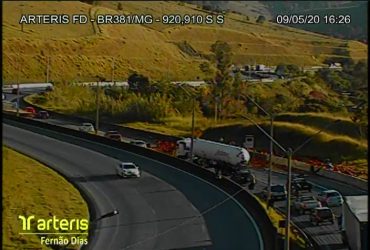 A Rodovia Fernão Dias tinha faixas bloqueadas no km 921, ...