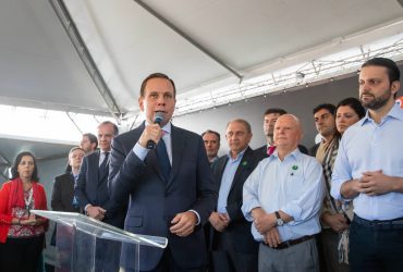 O Governador João Doria, junto com o ministro da Infraestrutura, Tarcísio ...