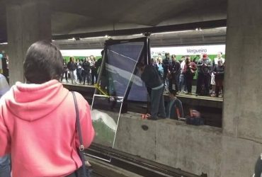 Uma placa de propaganda caiu na via na estação Vergueiro ...