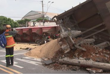 Um trem de carga da concessionária Rumo descarrilou nesta segunda-feira, ...