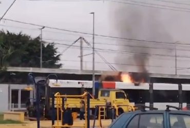 Um veículo leve sobre Trilhos – VLT pegou fogo na ...