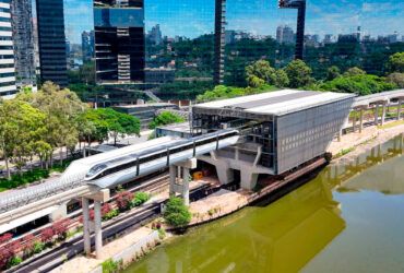 Um trem do monotrilho da Linha 17-Ouro chegou pela primeira ...