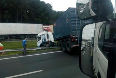 Um acidente envolvendo três veículos ocupa uma faixa da pista ...